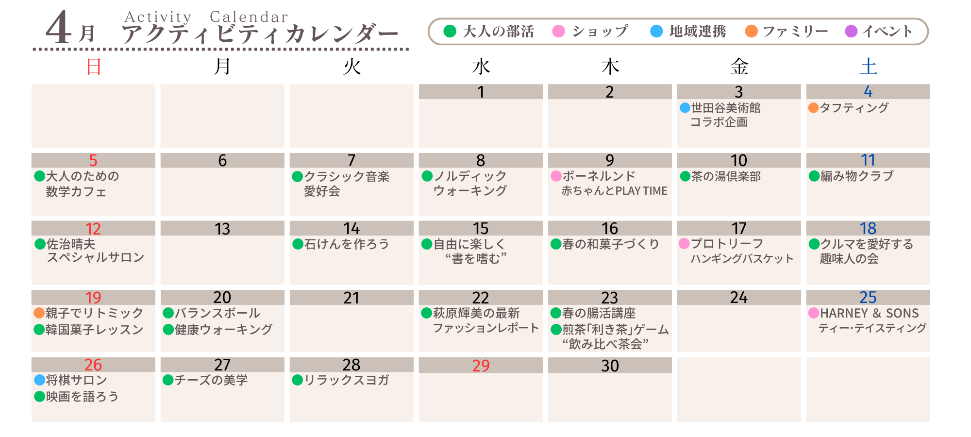 2026/03/25 4月 アクティビティカレンダー NEW