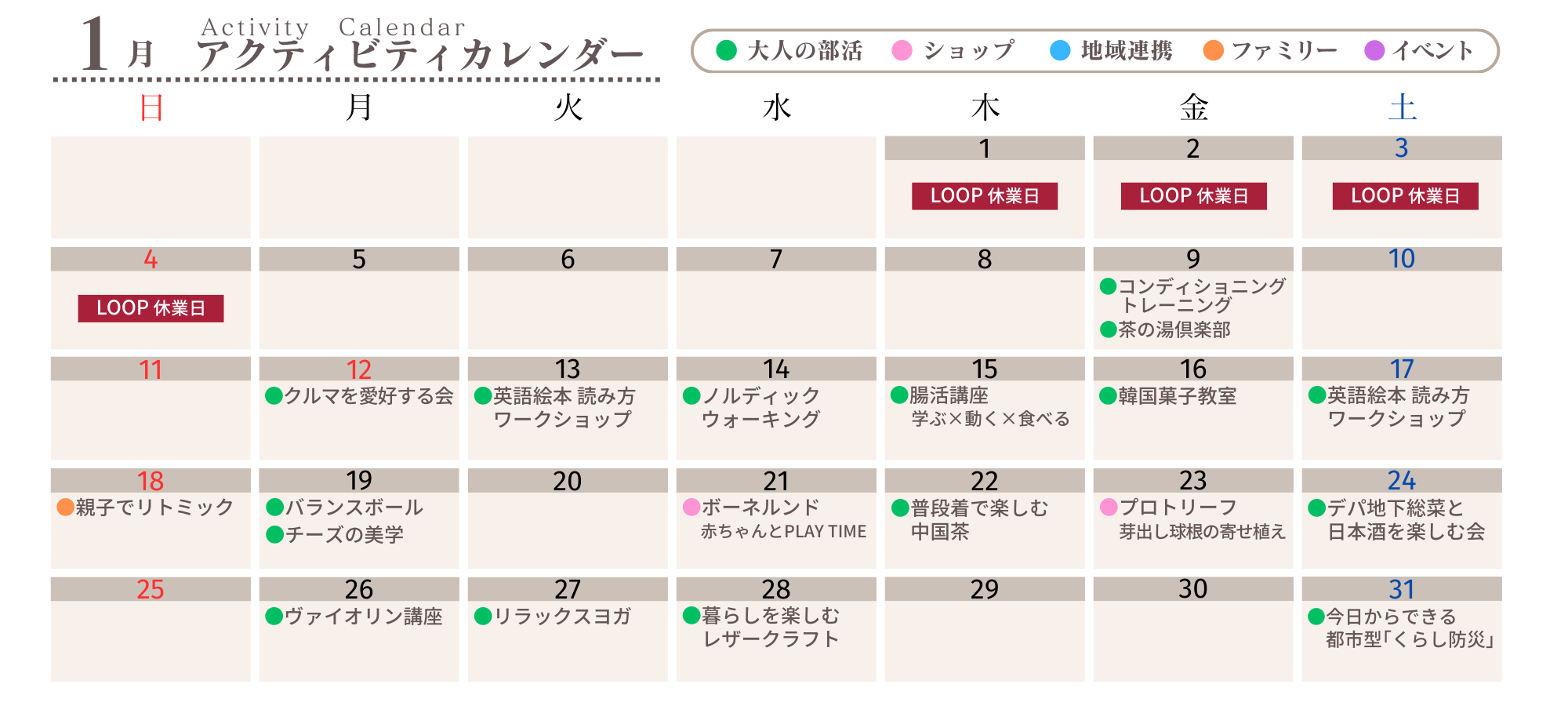 2025/12/24 1月 アクティビティカレンダー