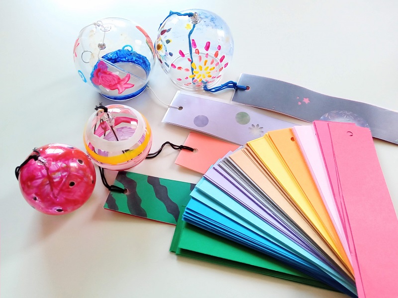 大、小のガラスにお好きなデザインを描いてオリジナルの風鈴をつくりましょう。絵付けと短冊の制作もいたします。
