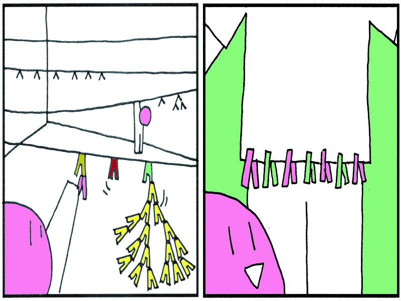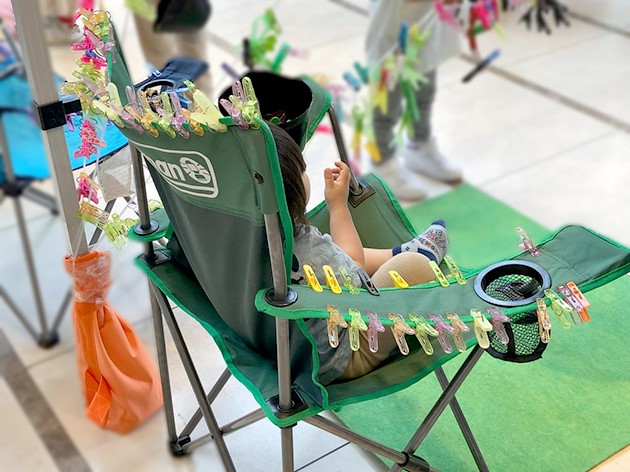 大人にとっては見慣れた“普通のせんたくばさみ”を使った“自由な子どもたちのための遊びの広場”。
