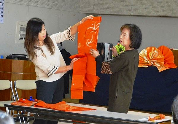 この会では、秋の装飾やお正月に向けて飾れる華やかな帯アートを作ります。