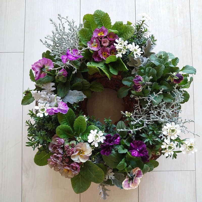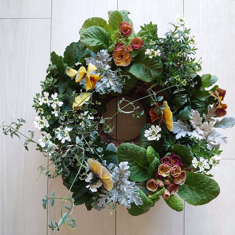 プリムラジュリアンで作る「リース型寄せ植え」ワークショップ