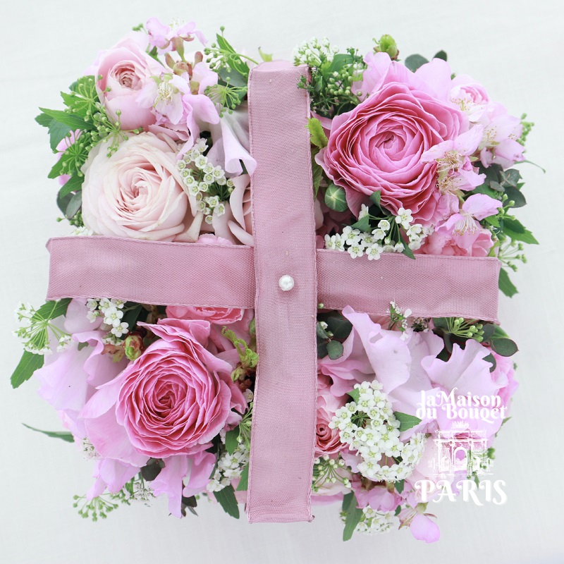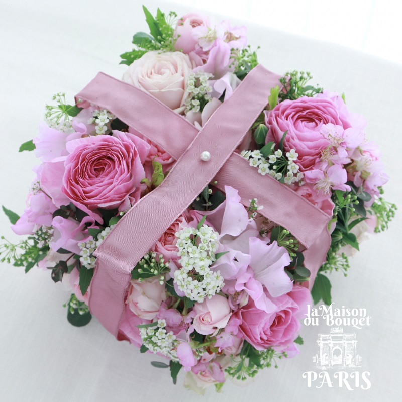 華やかな花々が詰まった箱型デザインに可愛らしいリボンを添えて、特別な日のギフトにもぴったり。