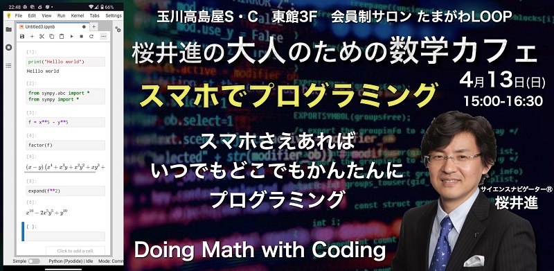 そんな桜井さんの「大人のための数学カフェ」、今回は「スマホでプログラミング」がテーマです。
