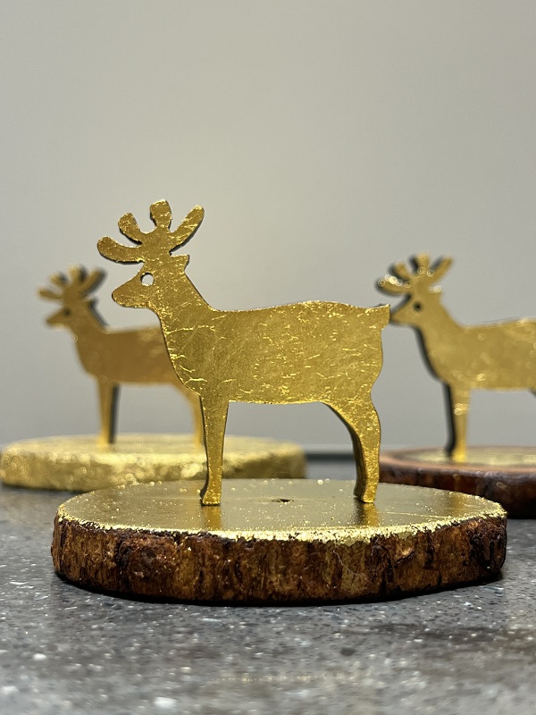 可愛い鹿のオブジェを金箔で彩っていただきます。