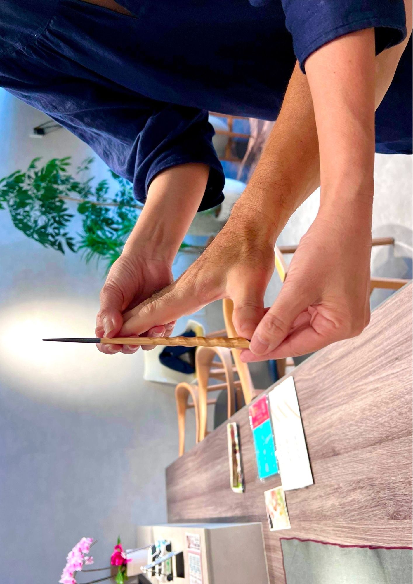 ステップ1:正しい箸の持ち方 “なんとなく”の持ち方から「理にかなった正しい持ち方」へ。 指先の動きが変わると、所作全体の印象が変わります。
