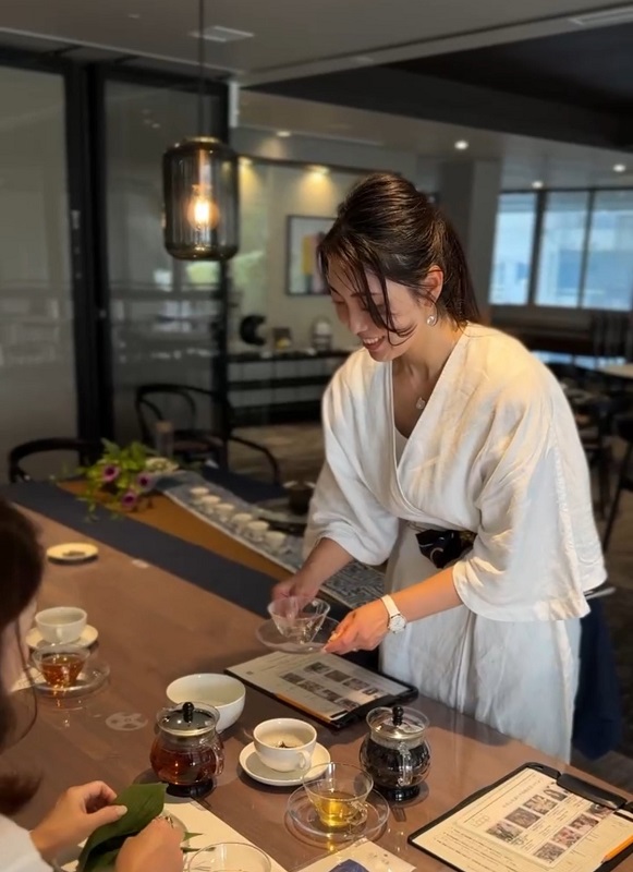 その後は、東さんに蓋椀(がいわん)を使って、簡単に美味しく楽しめる中国茶の淹れ方をデモンストレーションしていただき、2種類目のお茶を召し上がっていただきます。