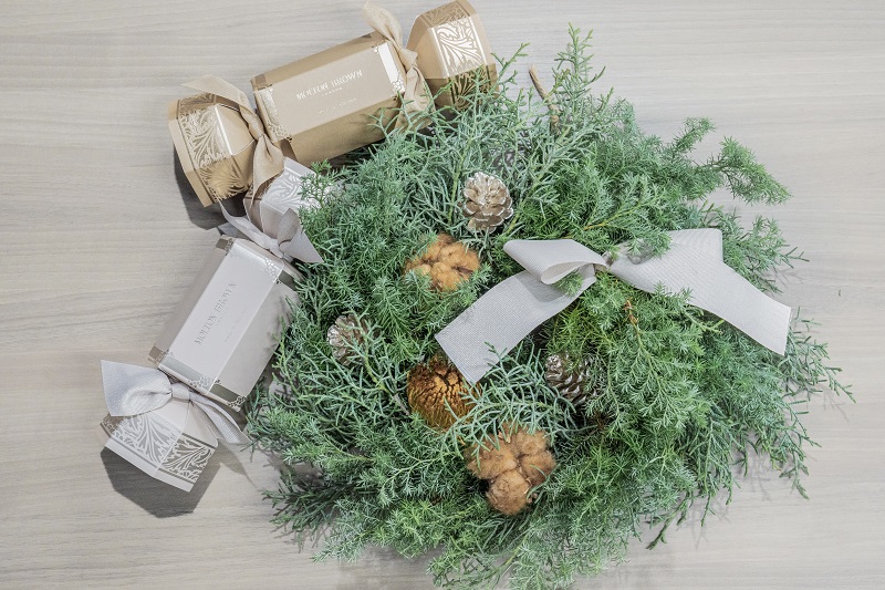 モルトンブラウンのフレグランスをたっぷり体験していただいたあとには、フラワーアーティスト・前田有紀さんを講師にお迎えして、季節の花材を使ったオリジナルのクリスマスリースづくりをお楽しみいただきます。