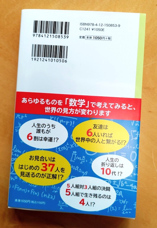 10月7日に刊行されたばかりの『人生は数学でできているー恋愛、戦争、うわさ…すべてが「解ける!』(中公新書ラクレ)。