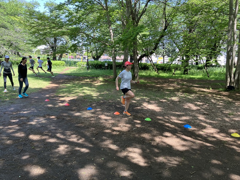 ストレッチやバランス運動だけで終わるのではなく、ランニングドリルを用いることで「走る」ことと「身体の状態」の関係を理解していただきます。