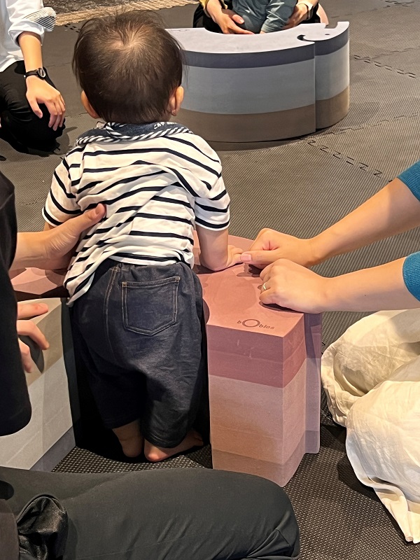 「赤ちゃんとPLAY TIME」は、あそび道具のプロであるボーネルンドが開発したオリジナルプログラムです。同じ月齢の赤ちゃんとファミリーが集まって、月齢に応じたあそび道具を使って一緒に遊びながら情報交換をしたり、子どもの発達と遊びについてインストラクターがお話ししたりしながら楽しい時間を過ごす会です。