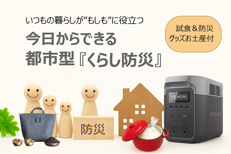 この会では、非常時のためだけの“特別な備え”ではなく、いつもの暮らしの延長でQOLを下げずに備える「都市型のくらし防災」を、女性防災士の加藤さんからデモを交えてわかりやすく伝えてもらいます。