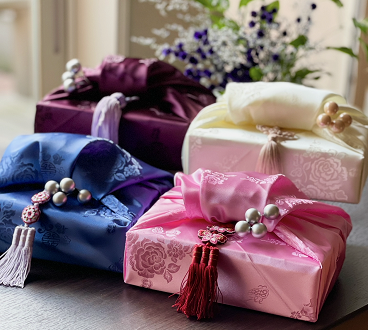 最後に韓国の美しい風呂敷「ポジャギ」を使ったポジャギラッピングをお楽しみいただきます。
