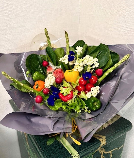 以前、たまがわLOOPで開催した「野菜ボックスアレンジ」も好評でしたが、今回は、おしゃれに「ブーケスタイル」のアレンジ。